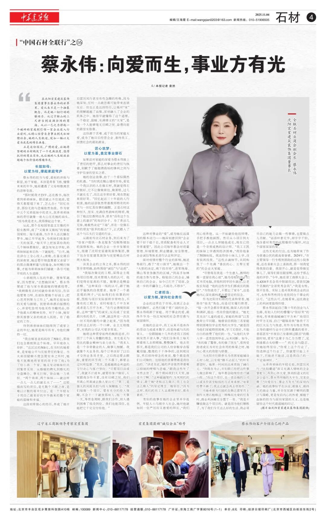 正是这份深沉、广博的爱,让她将坚硬的石材构筑了一个充满温度、值得托付的商业实体,也让她的人生绽放出超越个体价值的璀璨华光。