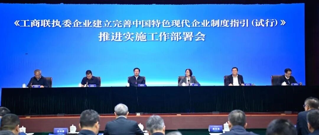 点击蓝字关注公众号11月7日,《工商联执委企业建立完善中国特色现代企业制度指引(试行)》推进实施工作部署会在京召开。近日,全国工商联、国家发展改革委、司法部、财政部联合印发实施《工商联执委企业建立完善中国特色现代化企业制度指引(试行)》。此次会议旨在深入贯彻党的二十大和二十届二中、三中、四中全会精神,认真贯彻习近平总书记关于引导民营企业建立和完善中国特色现代企业制度、努力实现高质量发展的重要指示精