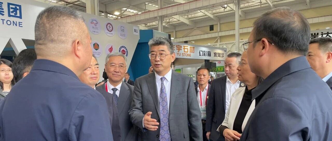 点击蓝字关注公众号10月18日,全联石材业商会、全联石材业商会雕刻艺术专业委员会应邀参加第二十二届云浮国际石材科技展览会暨第十六届云浮石文化周,商会秘书长陈雪根、雕刻艺术专业委员会常务副主任许飞参加活动。 本届展会由云浮市人民政府、广东省文化和旅游厅、中国国际贸易促进委员会广东省委员会主办,以“云聚石都、智启未来”为主题,汇聚全球石材产业精英,共绘合作发展蓝图。 开幕式播放了专题宣传片,相关领导嘉